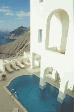 Хотел Atlantis се намира в центъра на град Фира на остров Санторини, с панорамна гледка към морето и само на 6 км. от летището и пристанището. Предлага настаняване на закуска и много добри условия за лятна почивка на море в Гърция. Остров Санторини има вулканичен произход, затова пясъка на плажната ивица е черен.