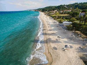 На първия ръкав от Халкидическия полуостров – Касандра, на 85 км от летището на гр. Солун, на 1,5 км от селището Криопиги, на брега на морето. Хотелът е напълно реновиран през 2010 г.