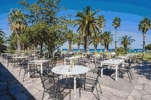 В основния ресторант на хотела се сервира закуска и вечеря на бюфет маса (и обяд за почиващите на ултра ол инклузив). Ammos е а ла карт ресторантът на хотела и е разположен на брега морето.