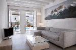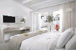 Hotel Patmos Aktis Suites and Spa is located on the beach Patmos Island, Greece. This 5-star hotel offers accommodation in 56 air conditioned rooms and suites with a telephone, a satellite TV, fridge, Internet access, a safe, a balcony, a minibar and a private bathroom with hairdryer. There is a lobby with 24-hour reception, hairdresser, a TV lounge, a conference centre, bar and restaurant, spa, fitness center, an outdoor and indoor swimming pool with a children's pool, a poolside snack bar and children's playground. The nearby beach is sandy.Serving parts and other conditions