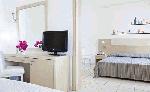 Hotel Dionysos Sea Side Resort is located in Mylopotas, Ios Island, Greece. This 4-star hotel, last renovated in 2007, has five buildings and offers accommodation in 43 air conditioned guest rooms with internet access, satelite TV, direct dial phone, a fridge, a balcony overlooking Aegean Sea, a safe and a private bathroom with hairdryer. There is a 24-hour reception, lounge room with the fireplace, restaurant, room service and a breakfast room. The hotel has an outdoor swimming pool with sun loungers and parasols, children's pool, gym and a pool bar, tennis courts and beach volleyball.Serving parts and other conditions