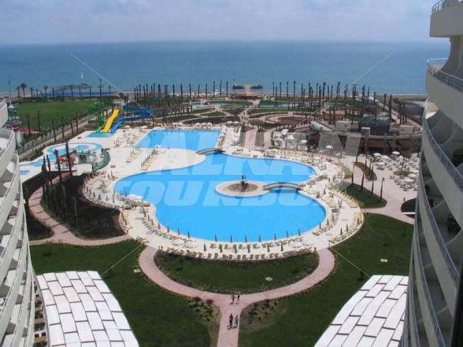 Хотелът е разположен на самия бряг на морето в района на Лара, на 10 км от Анталия.Обслужващи части и други условия