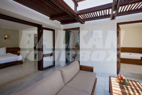 На разположение на гостите са голям открит басейн с водни пързалки, около който са наредени шезлонги, тенискорт, сауна, фитнес център, спа и уелнес център, масаж, детска площадка за игра, билярд, тенис на маса, ундсърф, дартс, джакузи, каране на кану, колоездене, турска баня, гмуркане, външен плувен басейн. Ползването на шезлонги, чадъри, матраци и кърпи на пплажа и край басейна е безплатно.