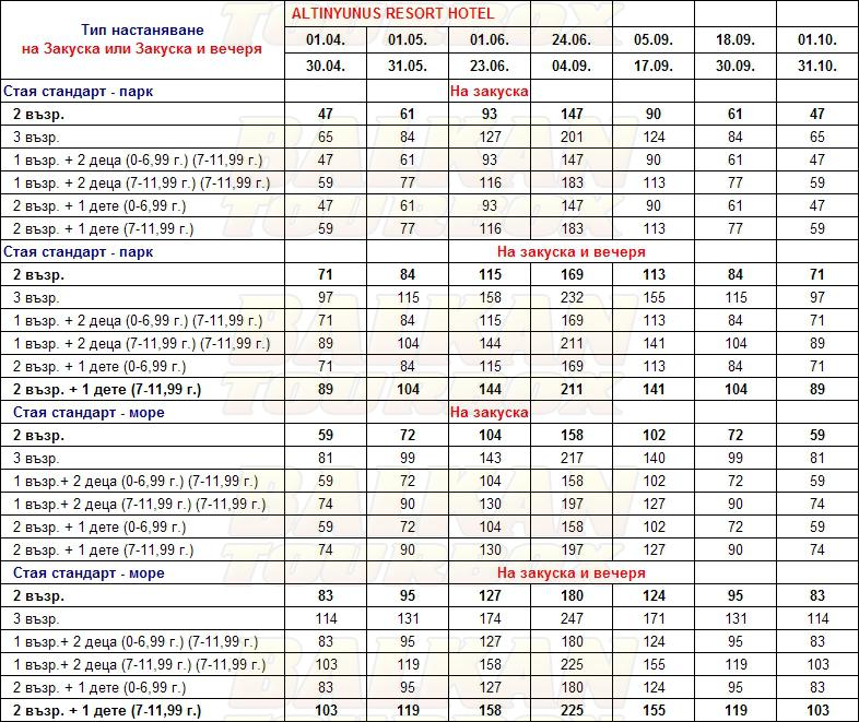 За места в хотела и калкулация на цена ни трябват точни дати от/до, брой нощувки, колко възрастни и деца в стая, навършени години на децата. Ползвайте бутона - Резервирай за да видите всички цени Или се обадете на 02 / 950 22 05, 02 / 980 1004, 0885 596 067