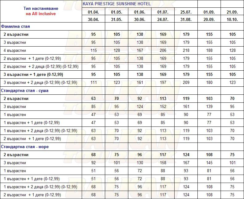 За места в хотела и калкулация на цена ни трябват точни дати от/до, брой нощувки, колко възрастни и деца в стая, навършени години на децата. Ползвайте бутона - Резервирай за да видите всички цени Или се обадете на 02 / 950 22 05, 02 / 980 1004, 0885 596 067