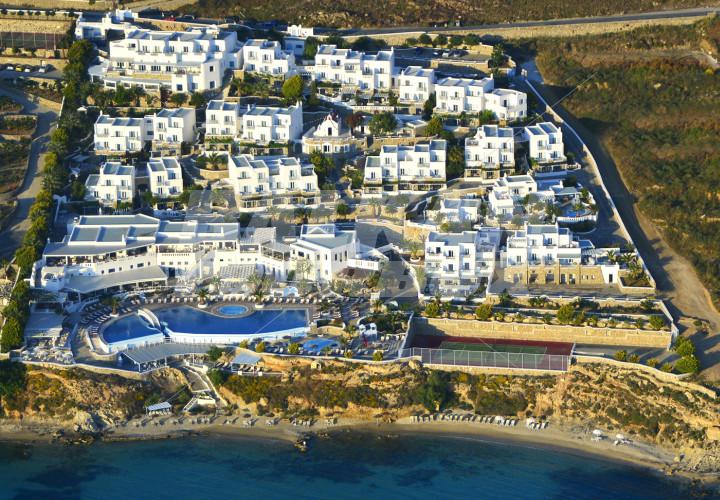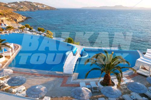 Хотел Св, Джон се намира на плажа в Агиос Йоанис Миконос, Гърция, само на няколко минути път с кола от град Миконос. Този 2-звезден хотел предлага настаняване в 145 климатизирани стаи за гости със сателитна телевизия, телефон, достъп до интернет, хладилник, балкон или тераса, сейф и самостоятелна баня със сешоар.Има асансьор, салон за красота, зала за закуска, бар и ресторант, 24 часа рум сервиз, тенис корт, фитнес център, гореща вана, Турска / парна баня, закрит басейн и открит басейн с детски басейн.Силно се препоръчва за семейна почивка през лятото на море в Гърция. Хотелът разполага с хеликоптерна площадка.Обслужващи части и други условия