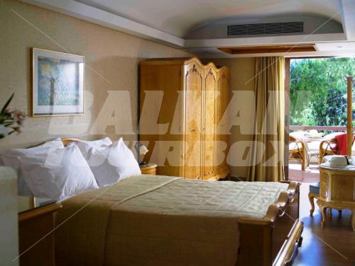 Хотел Посейдон се намира на плажа в Коринтския залив на Лутраки, Пелопонес, Гърция. Този 4-звезден хотел, последно реновиран през 2009 г., предлага настаняване в 320 климатизирани стаи и апартаменти с телефон с директно избиране, сателитна / кабелна телевизия, безжичен интернет, мини хладилник, самостоятелна тераса и самостоятелна баня с сешоар. Има лоби с 24-часова рецепция, сейф, обмяна на валута, фризьорски салон, кафене, барове, ресторанти, телевизионен салон, конферентни зали и безжичен достъп до интернет, рум сървис и паркинг. Хотелът разполага с 3 открити плувни басейна с детски басейн и снек-бар и тераса за слънчеви бани с шезлонги и чадъри. Разполага със спа център със закрит плувен басейн, фитнес зала, джакузи, сауна, парна баня и масажни процедури. Шезлонги и чадъри се предлагат на плажа.Обслужващи части и други условия