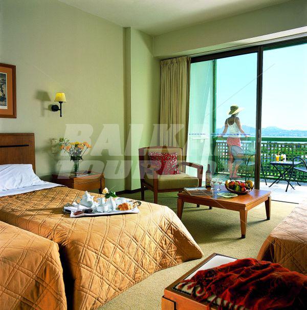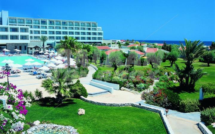 Хотел Grecotel Родос Royal е на първа линия на плажа Калитеа, остров Родос, Гърция.