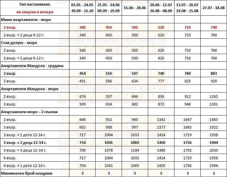 За места в хотела и калкулация на цена ни трябват точни дати от/до, брой нощувки, колко възрастни и деца в стая, навършени години на децата. Ползвайте бутона - Резервирай за да видите всички цени Или се обадете на 02 / 950 22 05, 02 / 980 1004, 0885 596 067