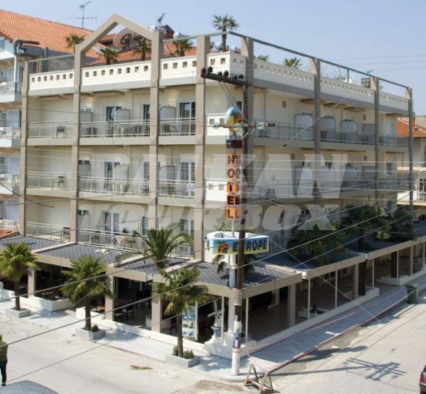 Тризвездният хотел Европа предлага 36 климатизирани стаи за настаняване с безплатен Wi-Fi интернет, сателитна телевизия, хладилник, самостоятелна баня с душ и сешоар и тераса. Хотелът разполага с лоби бар, ресторант, басейн на покрива с шезлонги, душове и снек-бар. Има безплатен обществен паркинг. Предлага тип настаняване на закуска и на закуска и вечеря. Прекрасна възможност за семейна лятна почивка на море в Гърция.Обслужващи части и други условия