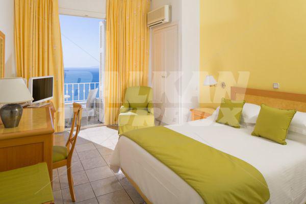 Хотел Atlantis се намира в центъра на град Фира на остров Санторини, с панорамна гледка към морето и само на 6 км. от летището и пристанището. Предлага настаняване на закуска и много добри условия за лятна почивка на море в Гърция. Остров Санторини има вулканичен произход, затова пясъка на плажната ивица е черен.