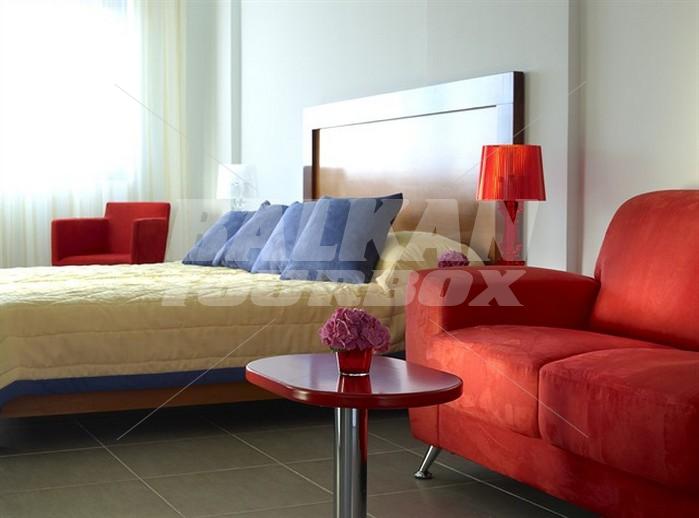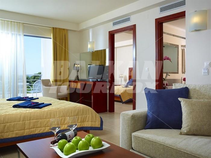 Плажът се намира на 3 минути пеша от хотела. Стаите му са климатизирани, а на разположение на гостите са и фитнес и сауна, както и детски и плувен басейн. Wi-Fi достъпът до интернет е безплатен на цялата му територия, а закуската се сервира на шведска маса.Повечето от стаите на хотела са с гледка към морето, като всяка една от тях е просторна и модерно обзаведена. Налични са LCD телевизор, баня с принадлежности, а на територията на хотела - бар и уелнес съоръжения.