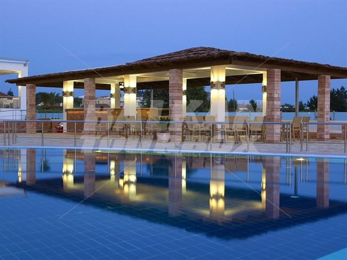 Хотел Ionian Theoxenia е елегантен хотел с 4 звезди, който предлага луксозна обстановка и удобно настаняване. Той съчетава бял и бежов цвят чрез архитектурата си, синьо чрез морето до него и зелено чрез красивата природа до него. В допълнение с модерното обзавеждане и удобствата, които се предоставят на гостите, този хотел се превръща в идеален вариант за незабравима отпуска, релакс и спокойствие.