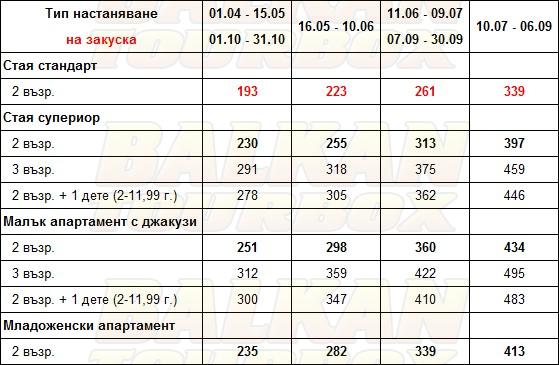 За места в хотела и калкулация на цена ни трябват точни дати от/до, брой нощувки, колко възрастни и деца в стая, навършени години на децата. Ползвайте бутона - Резервирай за да видите всички цени Или се обадете на 02 / 950 22 05, 02 / 980 1004, 0885 596 067