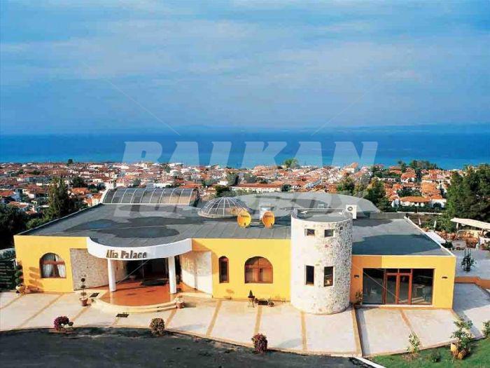 Хотел Alia Palace е разположен на първия ръкав на Халкидическия полуостров,на 90 км от Солун,в очарователния курорт Пефкохори,чието име е свързано с прекрасната борова гора,която го заобикаля и през цялото лято насища околността с мирис на борова смола и уханието на мащерка ,а само на няколко минути от центъра му са магазините,множеството барове,интернет-кафета, нощните клубове, недалече са пощата, банковите клонове, медицински пунктове, салоните за красота.Alia Palace е сравнително нов хотел(открит през 2003 г.) с модерна архитектура, хармонично вплетена в околната среда,с великолепна гледка към залива и кристално чистите води на морето.Хотелът разполага с 80 елегантни и удобни стаи с около 17 кв.м площ,обзаведени с климатик,собствен санитарен възел,радио,телефон,сателитна телевизия ,мини хладилник,мини бар(срещу допълнително заплащане),сейф(допълнително заплащане),балкон или тераса.