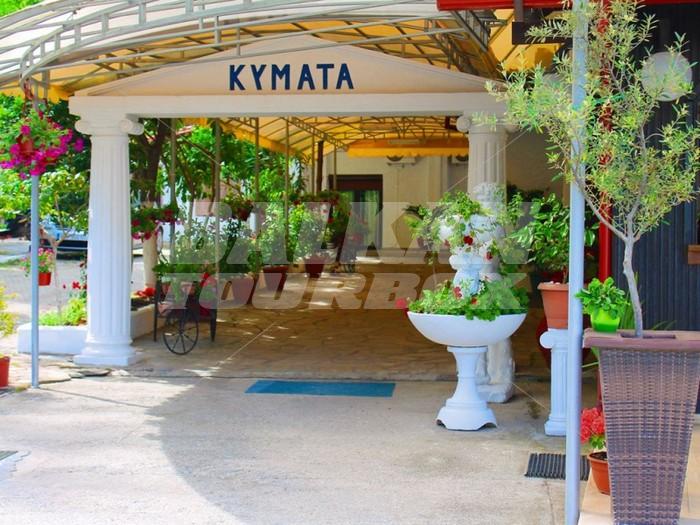 Kymata е първа линия семеен хотел, разположен в подножието на хълм със замък в близост до центъра на Платамонас, Гърция. Плажа е каменист. Закуската е на блок маса, а вечерята с меню.