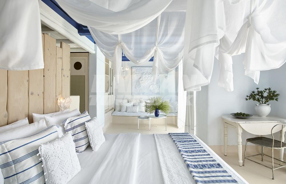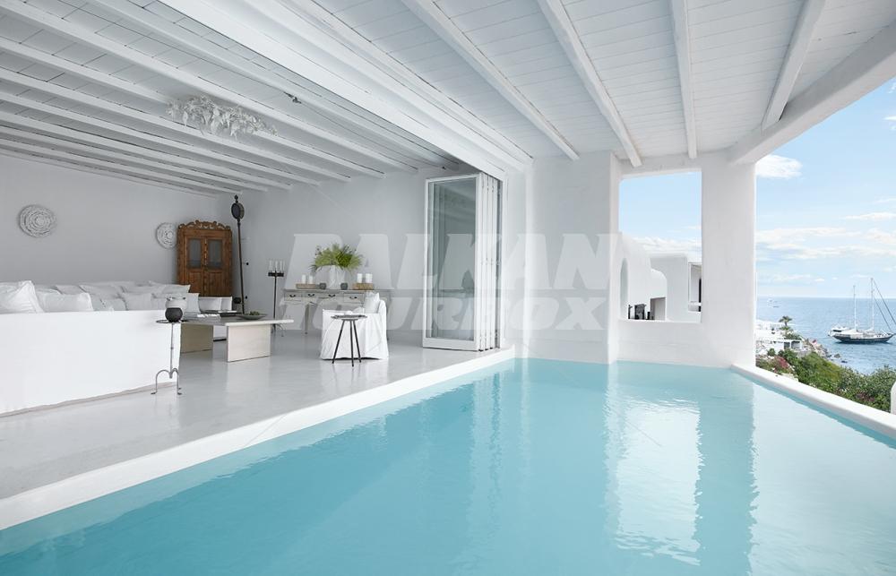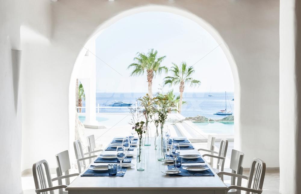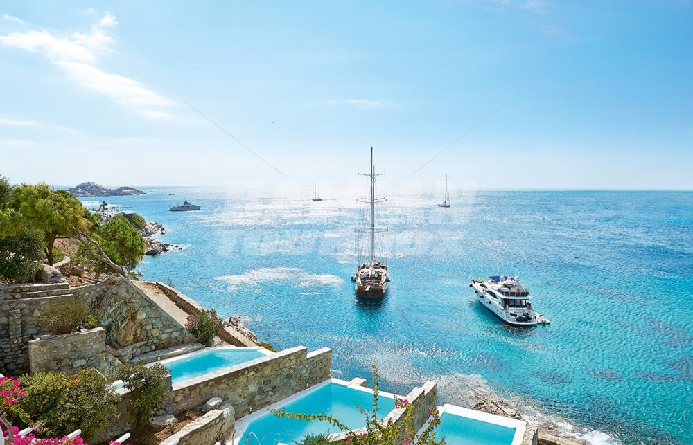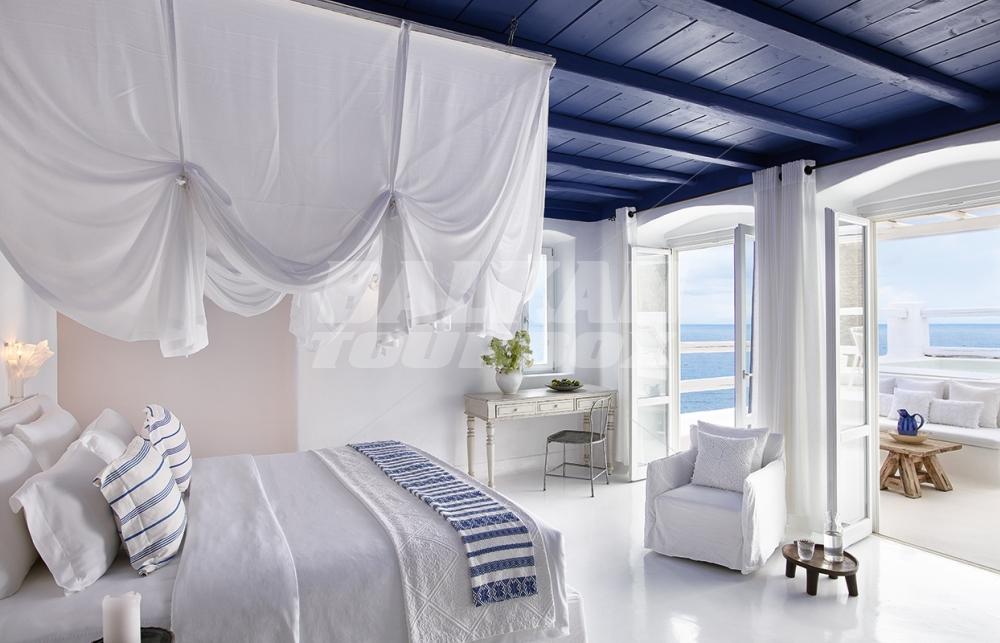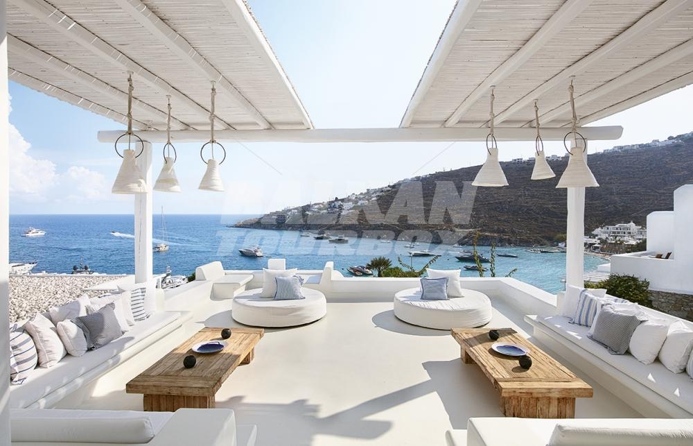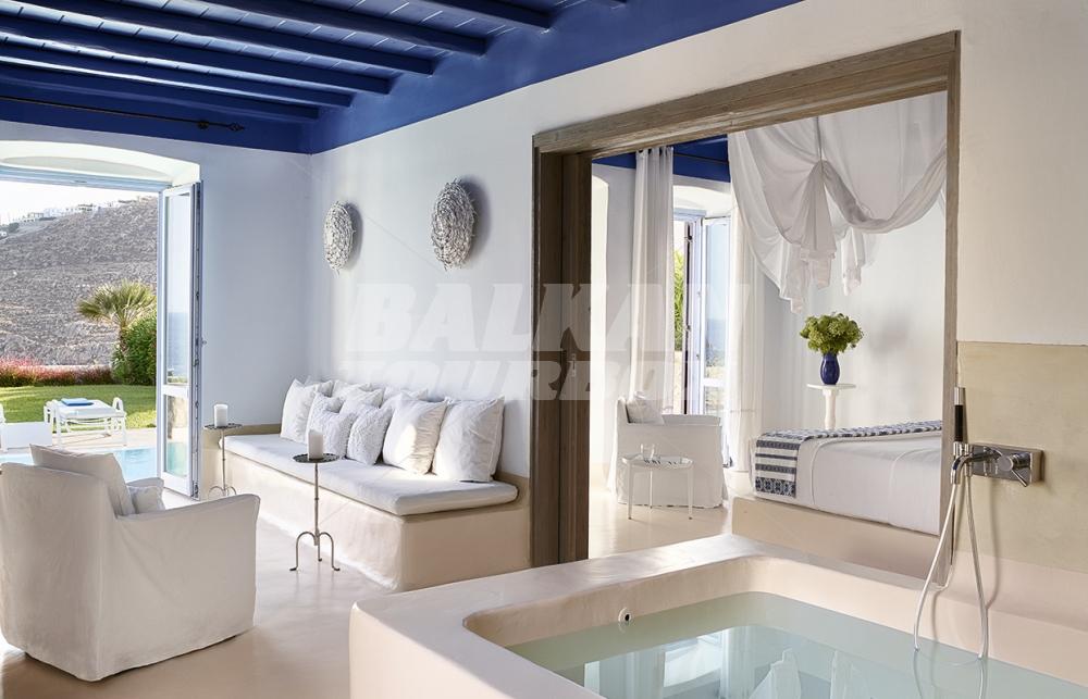 Петзвездният луксозен комплекс от бунгала и вили Mykonos Blu Grecotel Exclusive Resort е първа линия хотел с частна зона на плажа Псару в Миконос, Гърция. Предлага СПА център, инфинити басейн на второ ниво с изглед към морето и изискана обстановка за почивка.