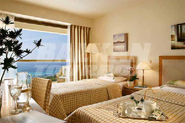 Sani Beach Hotel& Spa предлага 475 елегантно обзаведени стаи с изглед към морето или градината.