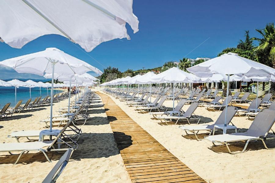 Щезлонгите на плажа се предоставят след заплащане, край басейна безплатни.