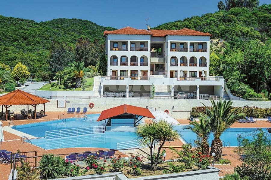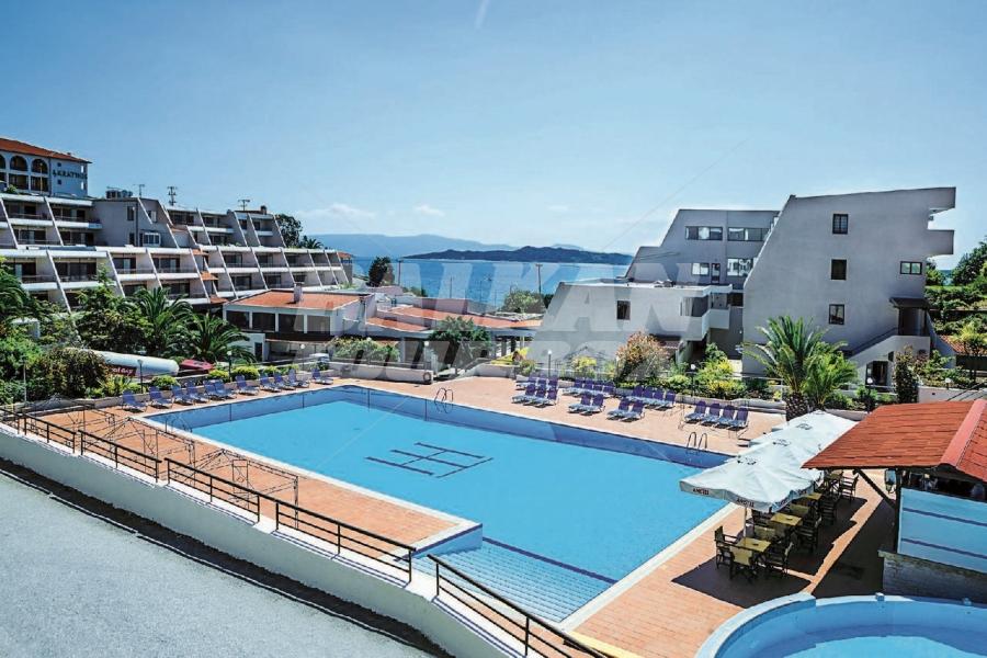 Комфортният хотел Theoxenia, разположен в самото сърце на третия ръкав на полуостров Халкидики – предлага на гостите си просторни стаи, добро обслужване, многообразие от спортни забавления, добра кухня, подходящ е за всякаква категория туристи, както и за спокойна семейна почивка край бреговете на Атон.