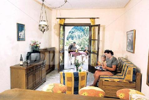 Сред красивата градина на целия комплекс Хрусо Вилидж са разпръснати основната сграда с 16 бунгала, за настаняване се предлагат 159 модерни и просторни студиа и апартаменти. Стаите са уютни и добре обзаведени с централен климатик, телевизор, сешоар, мини-бар, телефон, сейф (срещу заплащане),собствен санитарен възел, кухненски бокс (в апаратаментите).