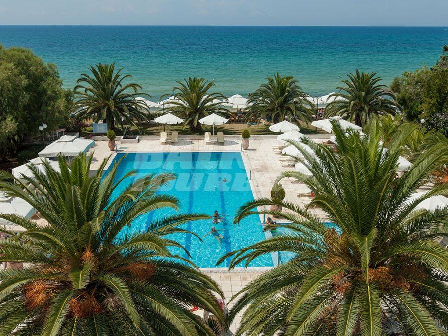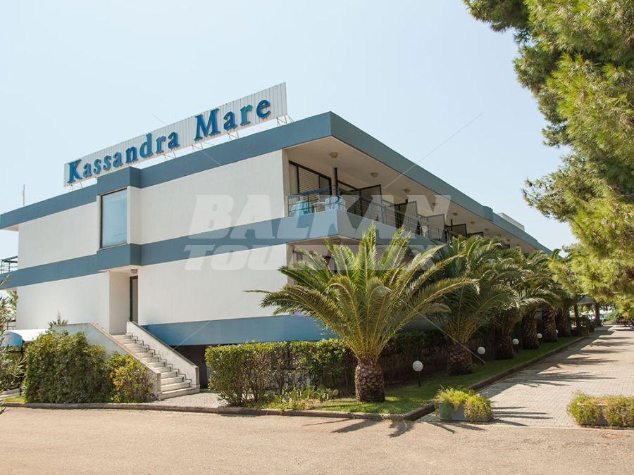 Kassandra Mare хотел е разположен сред прекрасна борова гора на брега на морето, на 2 км от курорта Неа Потидеа, на 4 км от Неа Мудания на първия ръкав на полуостров Халкидики - Касандра. Работи на система ол инклузив през лятото.