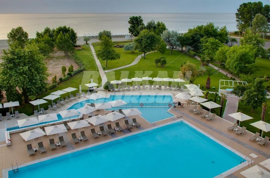 Олимпиан Бей Резорт се намира на пясъчния бряг на 15 минути пеша от селището Лептокария. Стаите са приятни и чисти, предлагат хубава глeдка както към Олимп, така и към морето. Олимпус работи под управлението на Бомо хотели и това веднага е дало отражение в качеството на храната и обслужването. Всичко е много постегнато и качествено. Хотелът често пуска промоции, особено за началото и края на сезона, следете редовно по-долу!