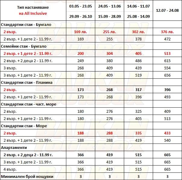 За места в хотела и калкулация на цена ни трябват точни дати от/до, брой нощувки, колко възрастни и деца в стая, навършени години на децата. Ползвайте бутона - Резервирай за да видите всички цени Или се обадете на 02 / 950 22 05, 02 / 980 1004, 0885 596 067