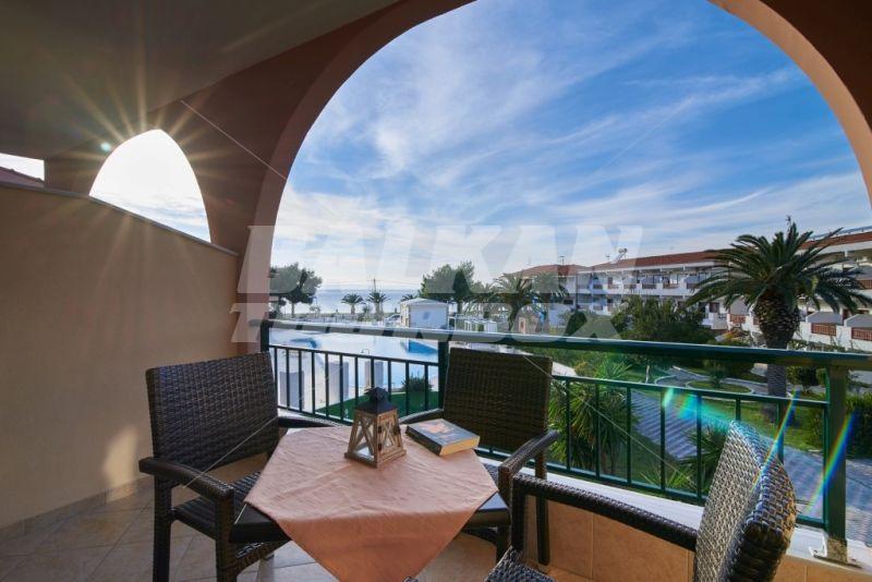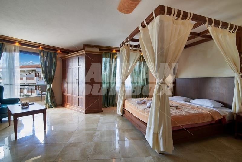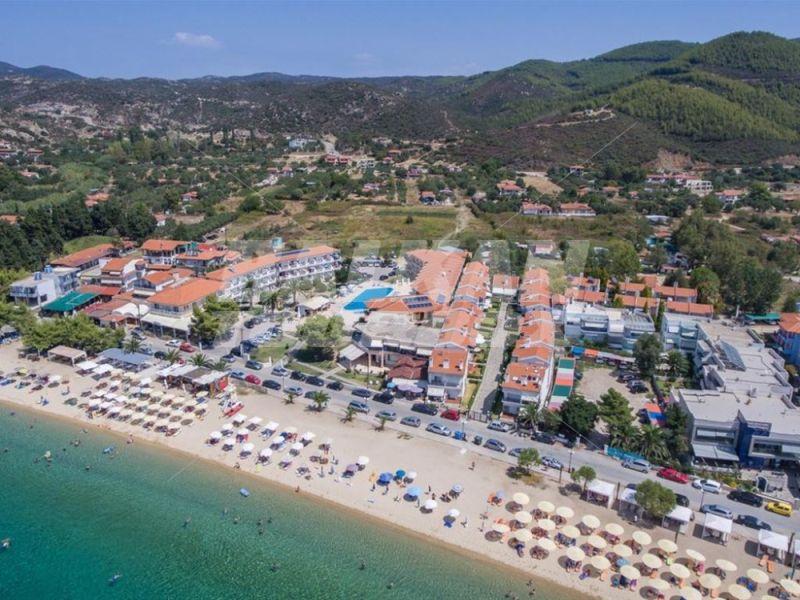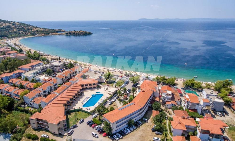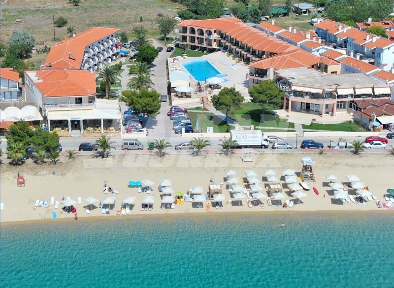 Силно впечатлява двукилометровата пясъчна ивица, наградена със син флаг на ЕС и разположена непосредствено пред хотела. Интересно е, че близо до курорта Торони, от двете му страни има и малки уединени романтични плажове, които привличат туристите.