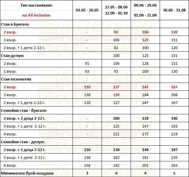 За места в хотела и калкулация на цена ни трябват точни дати от/до, брой нощувки, колко възрастни и деца в стая, навършени години на децата. Ползвайте бутона - Резервирай за да видите всички цени Или се обадете на 02 / 950 22 05, 02 / 980 1004, 0885 596 067
