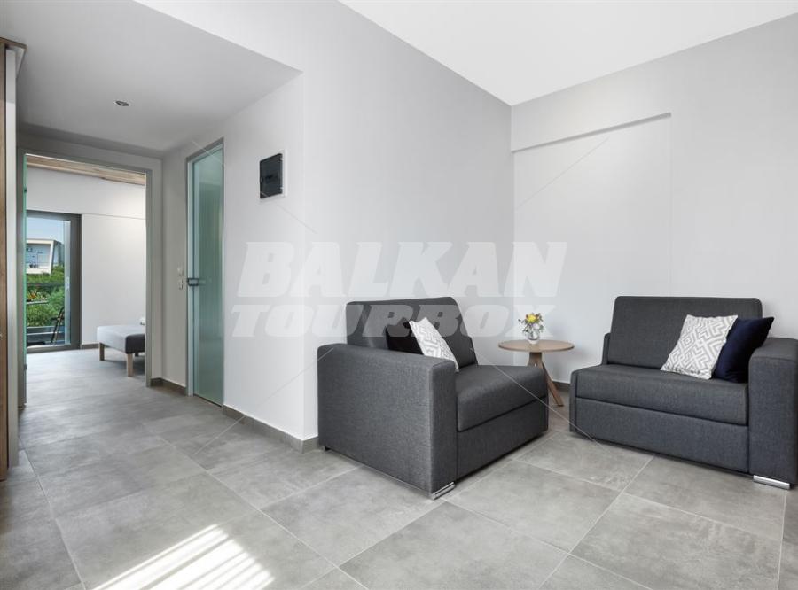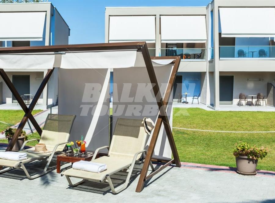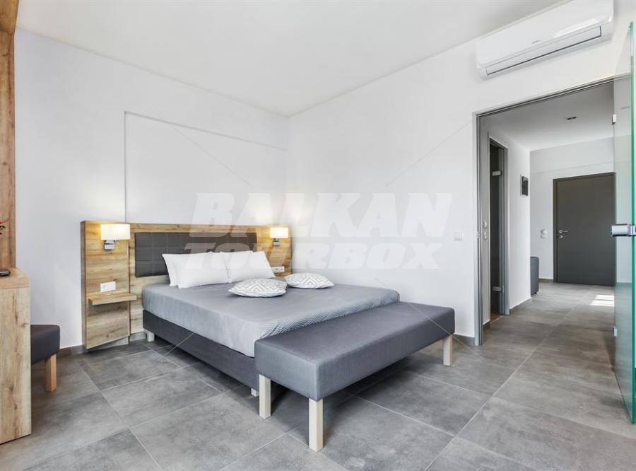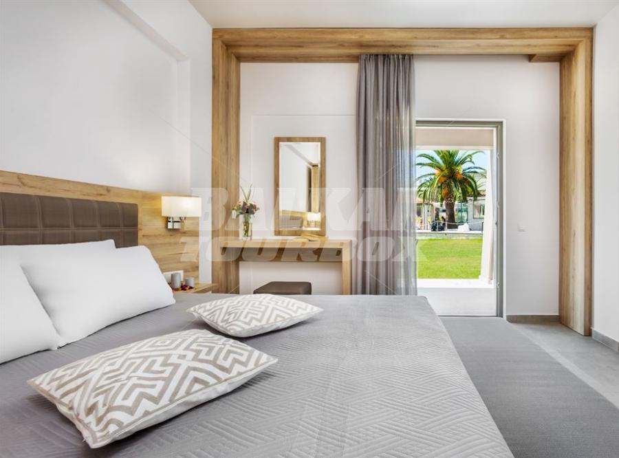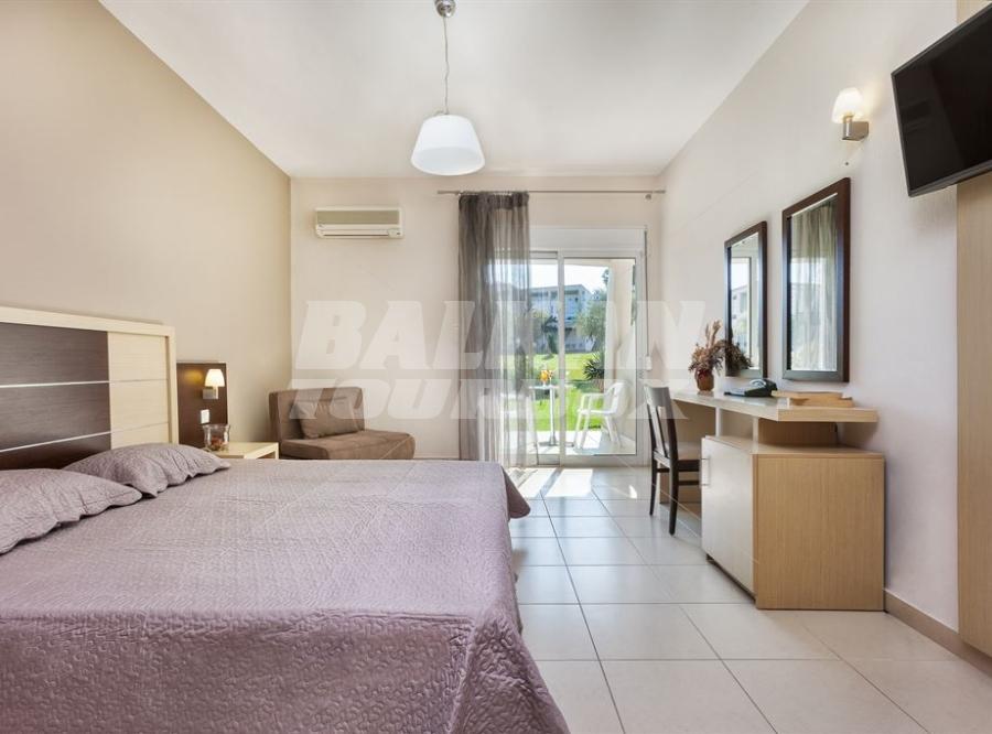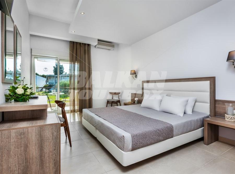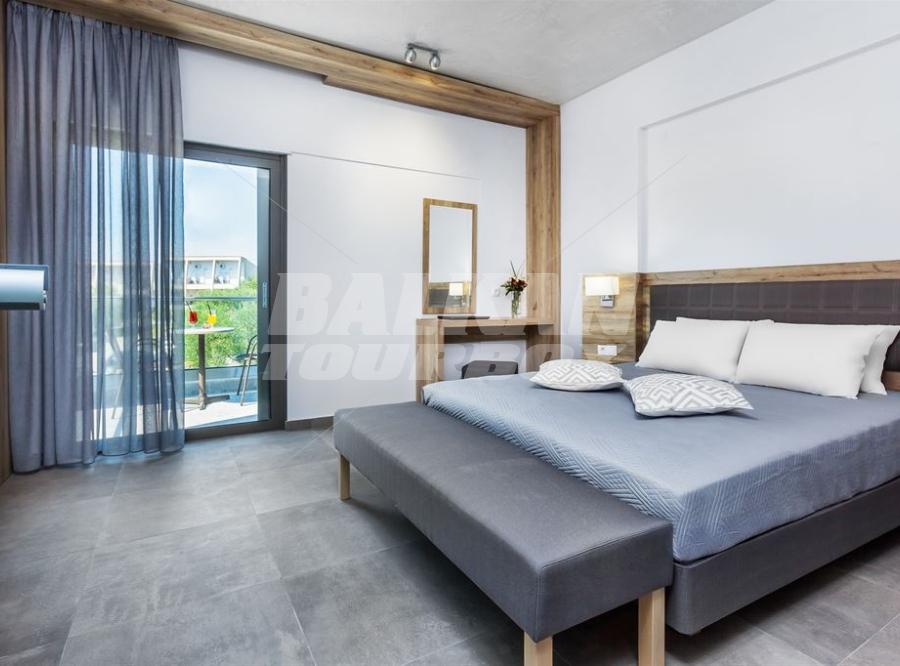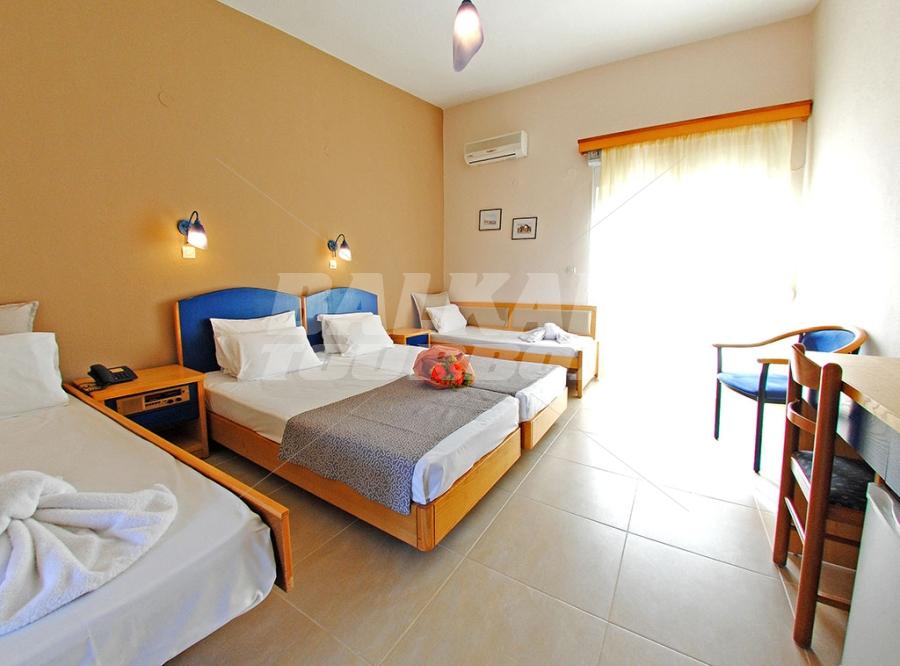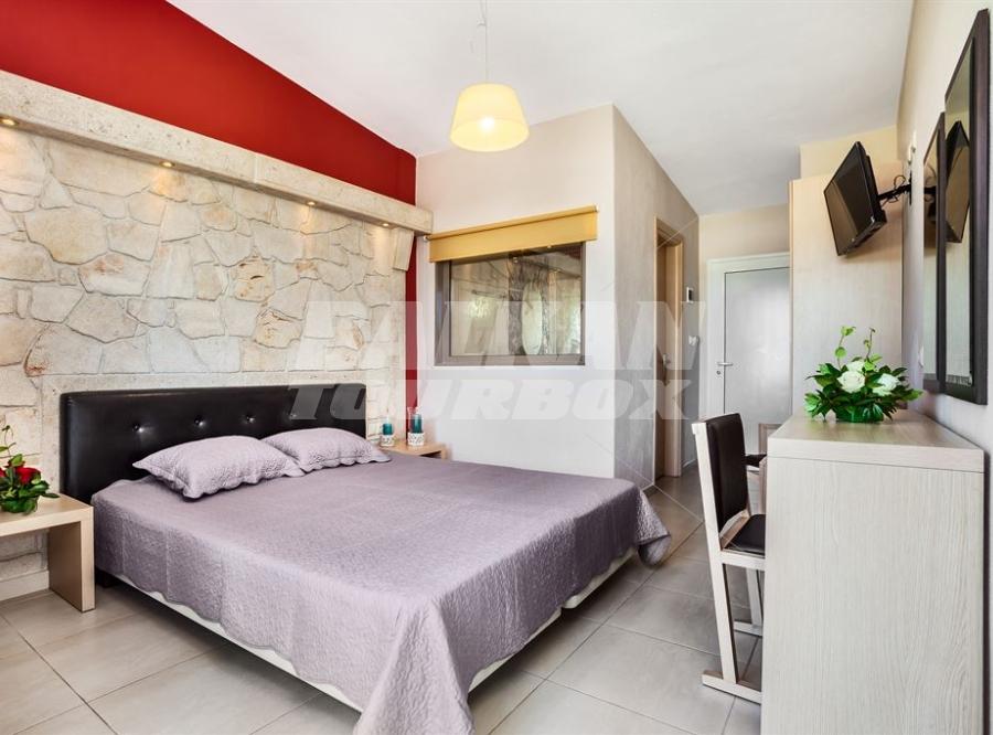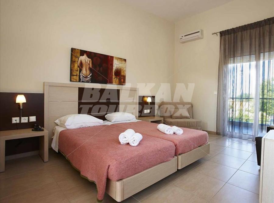 Iris Hotel е обновен през 2014 г. и се състои от пет двуетажни корпуса със 76 просторни и добре обзаведени стаи.и апартаменти, които разполагат с климатик, самостоятелен санитарен възел, телевизор със сателитни канали, телефон, хладилник, сейф, балкон или веранда с изглед към градината или басейна. Х отелът позволява настаняване на трима или двама възрастни плюс две деца.