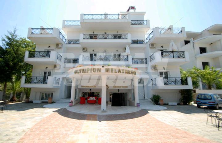 Хотел Olympion Melathron се намира в Платамонас, селище на Олимпийската Ривиера южно от Солун. Олимпион Мелатрон хотел е на 100 метра от морето на хубав пясъчен плаж, но не непосредствено на плажа. Хотелът е три звезди и предлага всички удобства на категорията, подходящ за бюджетна почивка в Гърция. Ценни ранни записвания, по-долу.