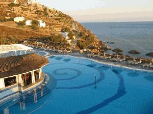 Offer: 10084, Location Greece, Mykonos IslandHotel is located in Platys Gialos of Mykonos, Greece, about 500 metres from Platis Yialos beach and kms from Mykonos town. This 5-star hotel, last renovated in 2007, offers accommodation in 27 air-conditioned guest rooms and suites with a satellite TV, telephone, internet access, fridge, a balcony or terrace, safe and a private bathroom with ...