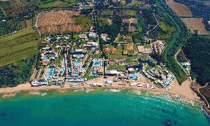 Offer: 10976, Location Greece, Peloponnese - IliaGrecotel La Riviera and Aqua Park is located on the the beach with a 2 km stretch of the sandy beach, Kyllini, Peloponnese, Greece. This 5 star hotel offers 208 air conditioned guest rooms, a full-service spa, bars, restaurants, tennis courts, an indoor pool, outdoor pools and children's pool.