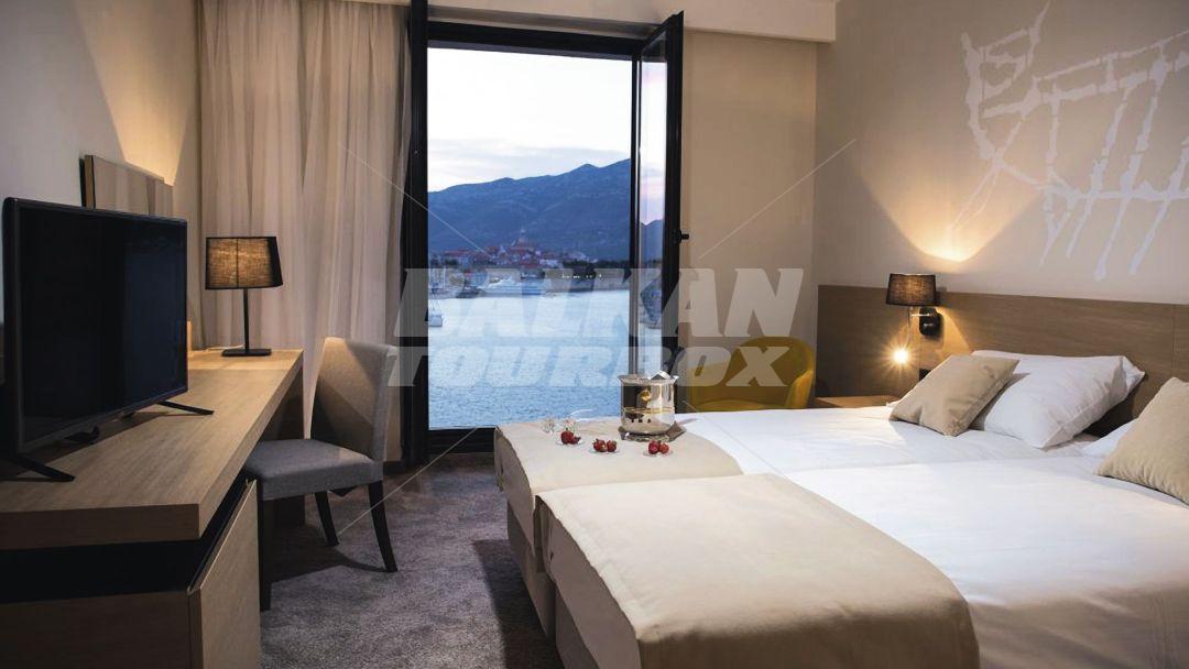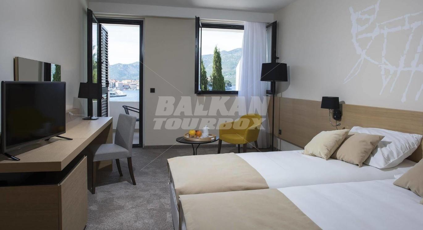 Hotel Liburna is located on Korcula, Croatia, only a 10-minute walk from the Old Town. The hotel Liburna offers 109 air-conditioned guest rooms. There is a lobby with a 24-hour reception desk, restaurants and bar. There is an outdoor pool, miniature golf, billiard, two tennis courts, a bowling alley, sailing and windsurfing.Serving parts and other conditions