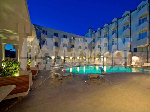 Hotel Korkyra is located on Korcula Island, Dubrovnik, Croatia. This 4-star hotel offers 58 air-conditioned guest rooms, an outdoor pool, a spa, a gym, breakfast room, restaurants and bar. There is a lobby with 24-hour reception, a hotel safe, currency exchange, lift, a cafe and Internet access. Guests may relax in outdoor pool, sauna and a gym.Serving parts and other conditions