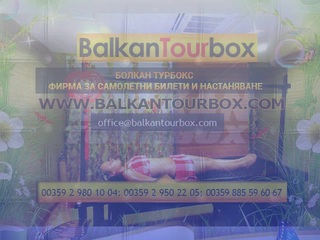 BALKAN TOURBOX Ltd. is a Tourist agency, offering its now numerous clients complete service, in the sphere of tourist and transportation services, as well as the sector’s accompanying insurance, legal, and consulting activities. You could easily reserve place reservations with us for airline tickets, rooms in over 160 thousand hotels the world over, vacation in Greece, vacation in Turkey, vacation in Bulgaria, vacation in Croatia, vacation in Montenegro, trips abroad, cruises, conference events.