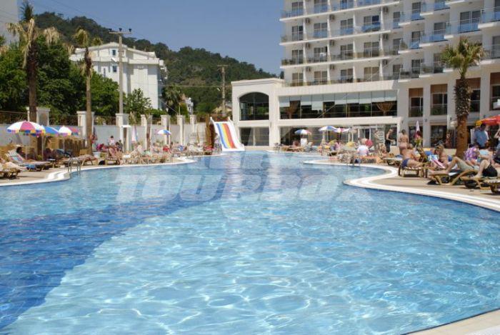 Grand Ideal Premium 5 Star and Hotel Ideal Pearl 4 Star are waiting to welcome you in Marmaris, that is 50 km far away from city of Mugla which has most popular historical and natural beauties of Turkey with sandy beaches and lots of resting facilities. Here, lots of pretty cafes and restaurants, bazaar, castle and unique views are waiting to be explored.Serving parts and other conditions