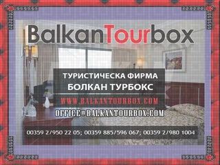 BALKAN TOURBOX Ltd. is a Tourist agency, offering its now numerous clients complete service, in the sphere of tourist and transportation services, as well as the sector’s accompanying insurance, legal, and consulting activities. You could easily reserve place reservations with us for airline tickets, rooms in over 160 thousand hotels the world over, vacation in Greece, vacation in Turkey, vacation in Bulgaria, vacation in Croatia, vacation in Montenegro, trips abroad, cruises, conference events.