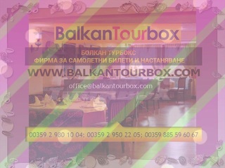 BALKAN TOURBOX Ltd. is a Tourist agency, offering its now numerous clients complete service, in the sphere of tourist and transportation services, as well as the sector’s accompanying insurance, legal, and consulting activities. You could easily reserve place reservations with us for airline tickets, rooms in over 160 thousand hotels the world over, vacation in Greece, vacation in Turkey, vacation in Bulgaria, vacation in Croatia, vacation in Montenegro, trips abroad, cruises, conference events.