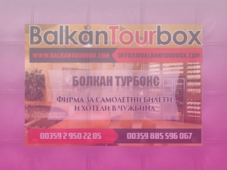 BALKAN TOURBOX Ltd. is a Tourist agency, offering its now numerous clients complete service, in the sphere of tourist and transportation services, as well as the sector’s accompanying insurance, legal, and consulting activities. You could easily reserve place reservations with us for airline tickets, rooms in over 160 thousand hotels the world over, vacation in Greece, vacation in Turkey, vacation in Bulgaria, vacation in Croatia, vacation in Montenegro, trips abroad, cruises, conference events.