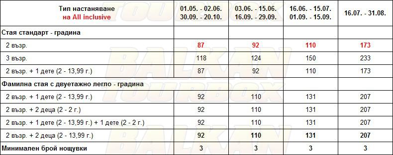 За места в хотела и калкулация на цена ни трябват точни дати от/до, брой нощувки, колко възрастни и деца в стая, навършени години на децата. Ползвайте бутона - Резервирай за да видите всички цени Или се обадете на 02 / 950 22 05, 02 / 980 1004, 0885 596 067
