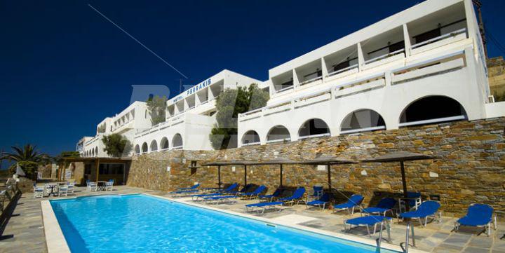 Hotel Perrakis is located in Andros Town of Andros Island, Greece, close to the Andros ferry terminal. This 3-star hotel offers accommodation in 44 air conditioned guest rooms with a flat-screen satellite TV, safe, mini-bar / a fridge, a private balcony and a private bathroom with hairdryer. There is an outdoor swimming pool free Wi-Fi access, a restaurant and bar. Massage treatments are available on request. Massages are available on request.Athens is 2 hours away by boat.