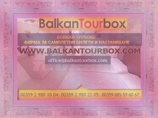 BALKAN TOURBOX Ltd. is a Tourist agency, offering its now numerous clients complete service, in the sphere of tourist and transportation services, as well as the sector’s accompanying insurance, legal, and consulting activities. You could easily reserve place reservations with us for airline tickets, rooms in over 160 thousand hotels the world over, vacation in Greece, vacation in Turkey, vacation in Bulgaria, vacation in Croatia, vacation in Montenegro, trips abroad, cruises, conference events.