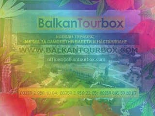BALKAN TOURBOX Ltd. is a Tourist agency, offering its now numerous clients complete service, in the sphere of tourist and transportation services, as well as the sector’s accompanying insurance, legal, and consulting activities. You could easily reserve place reservations with us for airline tickets, rooms in over 160 thousand hotels the world over, vacation in Greece, vacation in Turkey, vacation in Bulgaria, vacation in Croatia, vacation in Montenegro, trips abroad, cruises, conference events.
