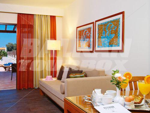 The hotel Asterion Beach and Suites is located on the beach in Chania-Platanias, Crete, Greece, about 15km west of Chania. This 5-star hotel, last renovated in 2009, offers accommodation in 67 air-conditioned guest rooms and suites with a direct dial telephone, satellite/ cable TV, a mini fridge, a private balcony and a private bathroom with a hairdryer. There is a lobby with a 24-hour reception, free Wi-Fi, shops, a hairdresser's salon, a bar, restaurant and a breakfast room, room service and a car park. The hotel has an outdoor swimming pool with a children's pool, playground, a poolside snack bar, gym and spa center. There are sun loungers and parasols available on the sandy beach.Serving parts and other conditions
