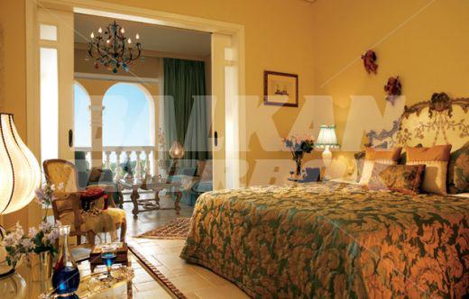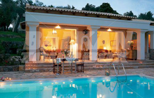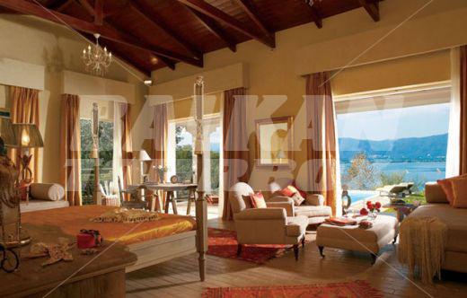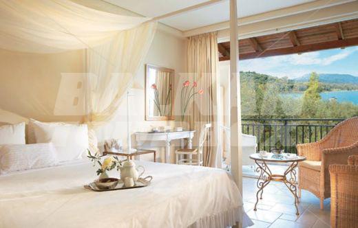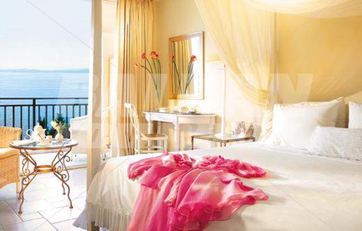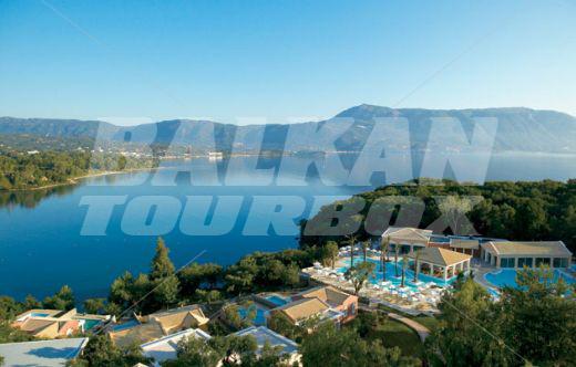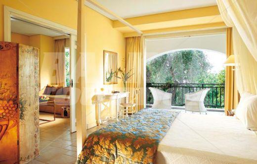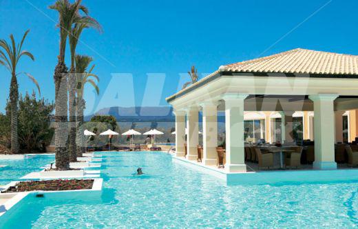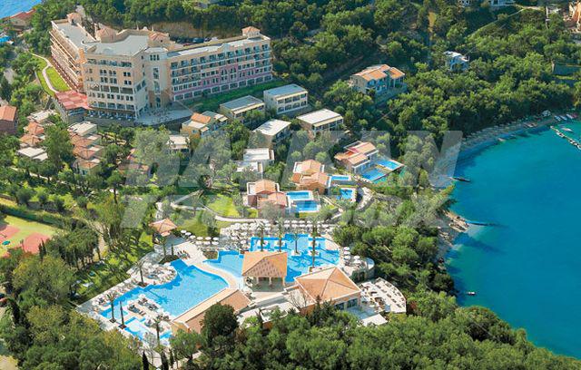The hotel Grecotel Eva Palace is located on the beach in Komeno, Corfu, Greece, about 10km from Corfu Town. This 5-star hotel, last renovated in 2005, offers accommodation in 225 air-conditioned guest rooms - suites with a direct dial telephone, satellite/ cable TV, a mini fridge, a private terrace and a private bathroom with a hairdryer. The bungalows are situated in the gardens with olive trees. There is a lobby with a 24-hour reception, a hairdresser, Internet access, a bar, restaurants and a breakfast room, room service and a car park. The hotel has an outdoor swimming pool, a children's pool and a poolside snack bar with sun loungers and parasols, a gym, tennis courts, table tennis, sun loungers and parasols on the sandy beach.Serving parts and other conditions
