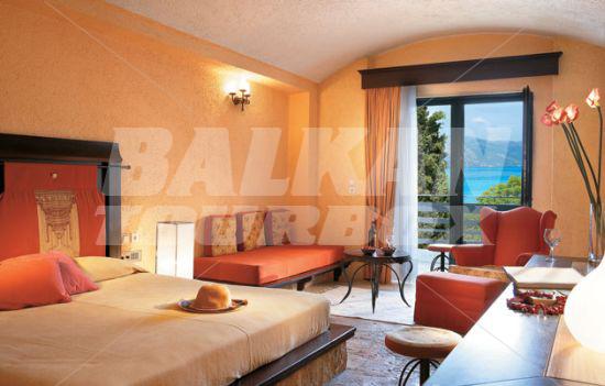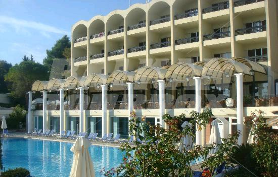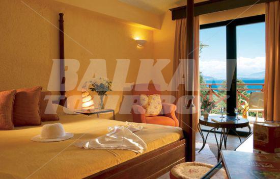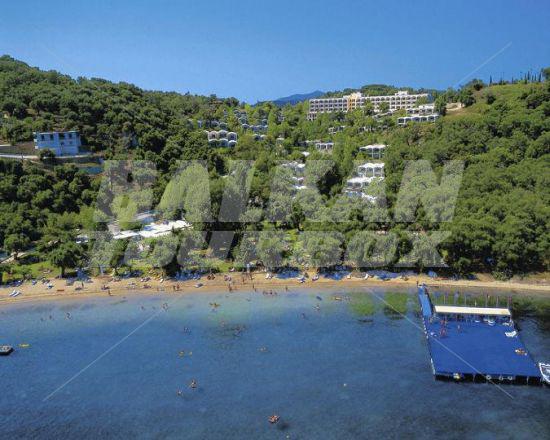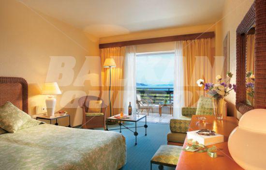 Hotel Grecotel Daphnila Bay Thalasso is located near to the beach in Dassia Bay, Corfu Island, Greece. This 5-star hotel offers accommodation in 260 air-conditioned guest rooms and suites with a direct dial telephone, satellite/ cable TV, a mini fridge, a private balcony or terrace and a private bathroom with a hairdryer. The bungalows are between the olive trees. There is a lobby with 24 hour reception, a bar and a breakfast room, room service and a car park. The hotel has an outdoor swimming pool with a children's pool and a poolside snack bar, indoor swimming pools, fitness and spa center, tennis court and basketball court. The hotel offers all-inclusive rest during summer on the sea in Greece.Serving parts and other conditions
