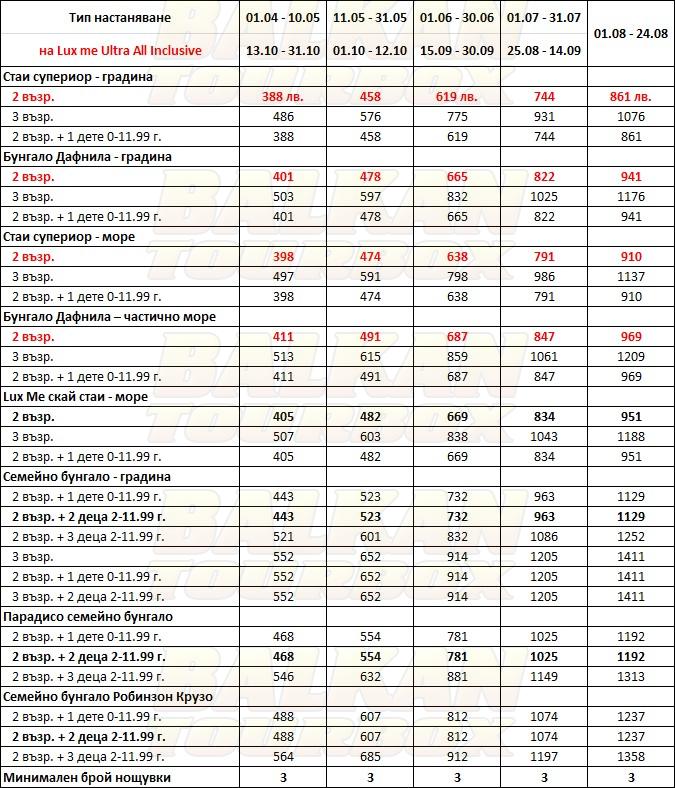 За места в хотела и калкулация на цена ни трябват точни дати от/до, брой нощувки, колко възрастни и деца в стая, навършени години на децата. Ползвайте бутона - Резервирай за да видите всички цени Или се обадете на 02 / 950 22 05, 02 / 980 1004, 0885 596 067