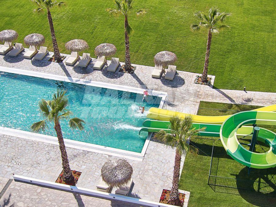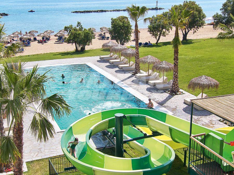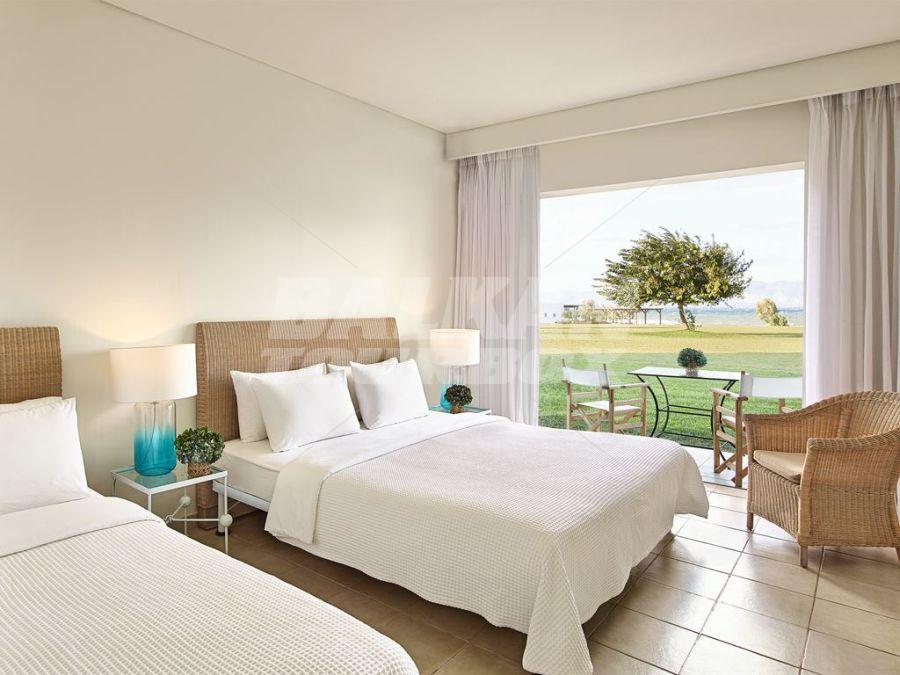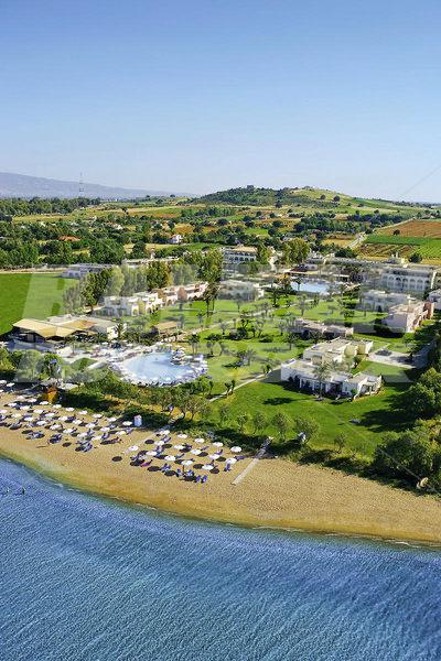 Hotel Grecotel Lakopetra Beach is located on the beach in Kato Achaia, Lakopetra - Pelopones, Greece. This 4 star hotel offers 270 air-conditioned guestrooms with a satellite television, a direct-dial phones, balcony and bathrooms with bathtubs and hair dryers. The hotel has a private beach, restaurant, wireless Internet in public area, an indoor pool, an outdoor pool, a children's pool and a children's club, outdoor tennis courts, a health club, and a sauna.